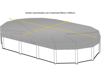 Afdekzeil voor ovaal zwembad 1110 x 550 cm (zeilmaat 1170 x 610)