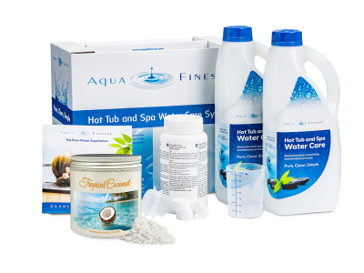 Het AquaFinesse pakket is een compleet onderhoudssysteem voor spa’s waarmee je het water fris en schoon houdt. Je hebt geen andere middelen nodig. Eén keer per week de vloeistof en een tablet toevoegen is voldoende. Het pakket is geschikt voor een gebruiksperiode van drie tot zes maanden.