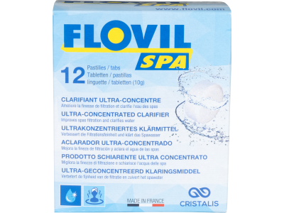 Met de Flovil Spa vlokmiddel tabletten houd je het water in je spa helder en schoon. Deze tabletten zorgen ervoor dat kleine en zwevende vuildeeltjes in je spa samenklonteren, zodat ze makkelijker te filteren zijn. Een deel van het vuil zakt naar de bodem en kun je later met een spa-stofzuiger verwijderen. Eén verpakking bevat 12 tabletten, voldoende voor ongeveer 12 weken gebruik.
