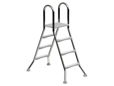 Met deze A-frame zwembadtrap stap je eenvoudig en veilig in jouw bovengrondse opzetzwembad. De trap is gemaakt van hoogwaardig roestvrij staal (RVS AISI 304), wat zorgt voor een stevige en duurzame constructie die goed bestand is tegen verschillende weersomstandigheden. Het ontwerp met een platform bovenaan maakt het in, en uitstappen van het zwembad comfortabel en stabiel.