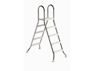 Deze IDEAL A-frame zwembadtrap is een stevige en betrouwbare keuze voor jouw bovengrondse zwembad. De trap is speciaal ontworpen voor zwembaden met een geadviseerde maximale diepte van 135,5 cm. Dankzij het sterke roestvast stalen frame staat de trap stabiel en kun je er jarenlang plezier van hebben. De totale hoogte van de constructie is 129,5 cm, wat zorgt voor een goede pasvorm over de rand van je zwembad.