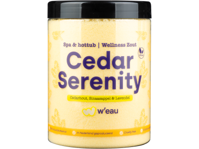 Ontspan je lichaam en kom tot rust met W’eau Cedar Serenity badzout. Deze verpakking van 1250 gram combineert Dode Zeezout en Epsomzout, voor een verzachtende werking op je spieren en huid. De rustgevende geur draagt bij aan een kalmerende sfeer in bad, spa of hottub.